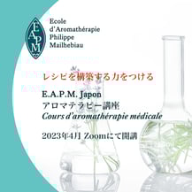 E.A.P.M.(Ecole d’Aromathérapie Philippe Mailhebiau)とは、メディカルアロマテラピーに精通した医療従事者を育成するために、フランスの芳香療法研究者 Philippe Mailhebiauフィリップ・メユビオ が確立したメソッドで学ぶ講座です。