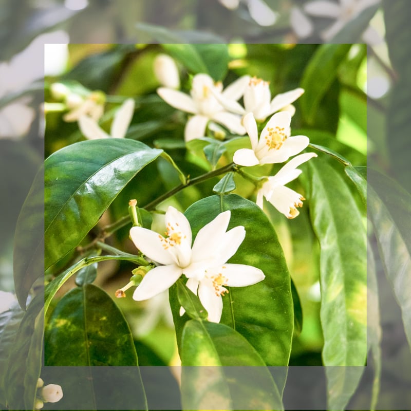 オレンジの木からは、「花」「葉」「果皮」からそれぞれ成分の異なる3種類の精油が抽出されます。 花から抽出されるネロリは何物にも代え難いとても芳しい高価な精油ですが、アロマテラピーという観点から言えば、プチグレンはネロリに勝るとも劣らない精油です。ミカン畑のような香りがします。